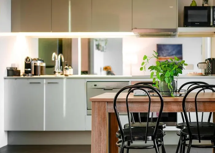 Este apartamento se encuentra en el barrio Seehausen, a tan solo 550 metros de Docklands Park y bastante cerca de BP Head Office. La Galería Nacional de Victoria está situado a unos 2 km del apartamento.
